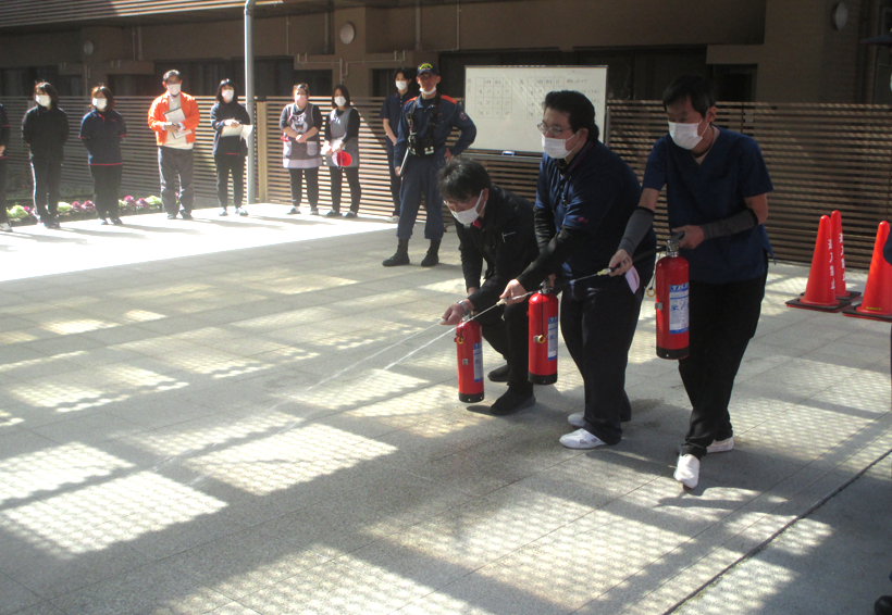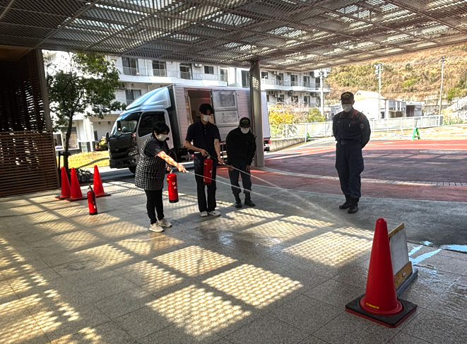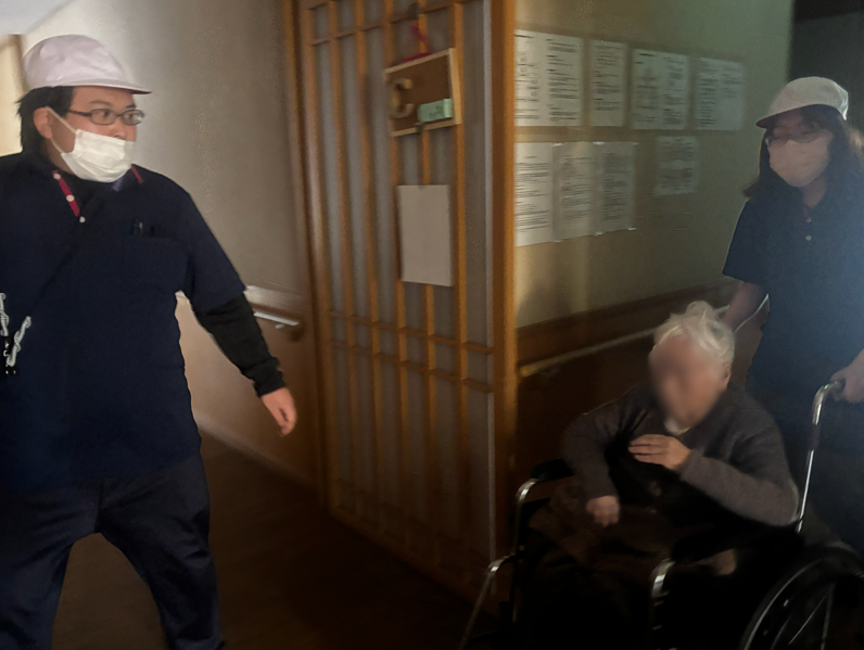 3月9日(月)10:00~ 谷山北分遣隊の立会いの下、特別養護老人ホーム(夜間想定)、ケアハウスしゅうゆう(自主)で避難訓練を行いました。